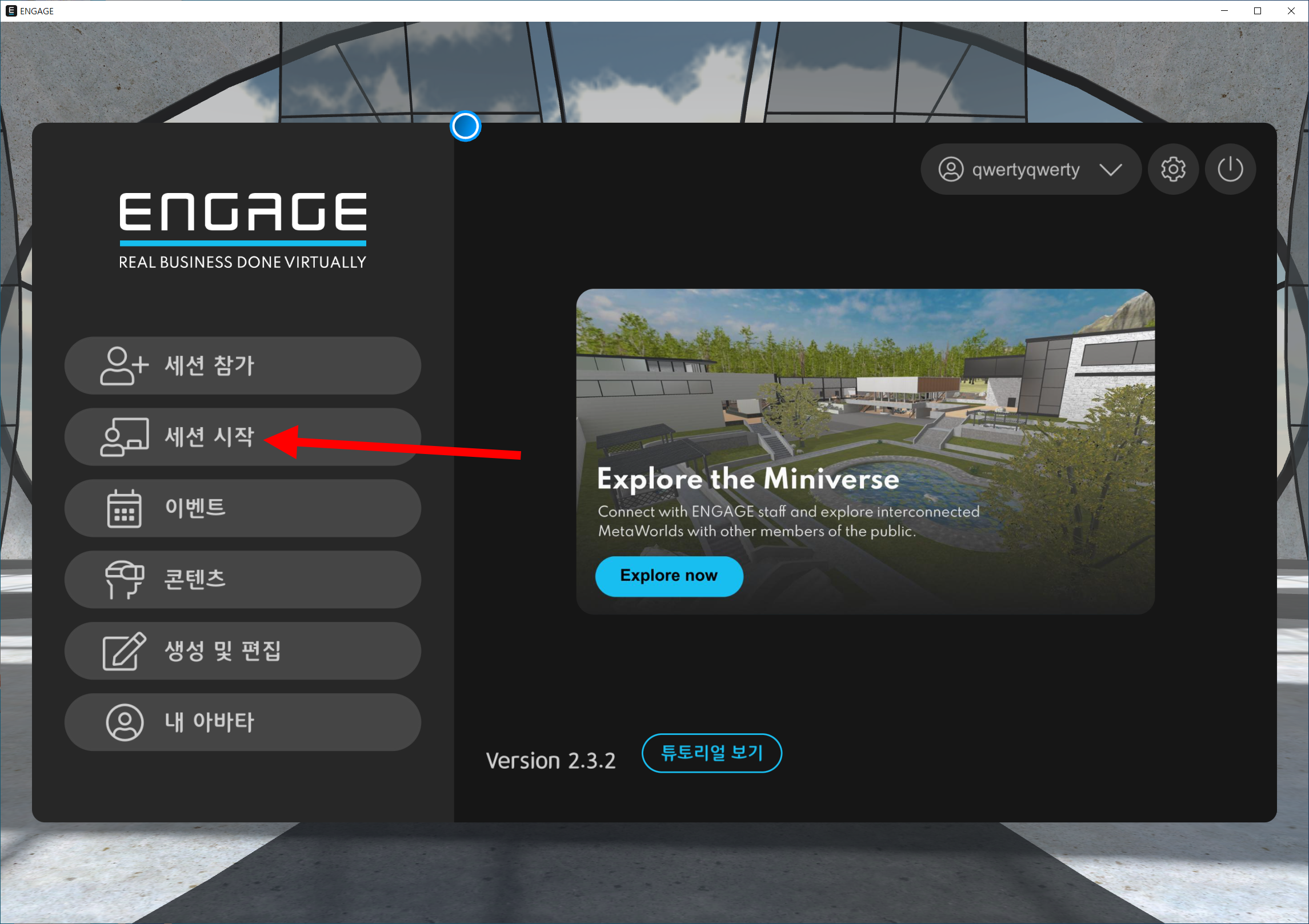 5)선택한 장소에서 세션을 시작한것을 확인할수있습니다.