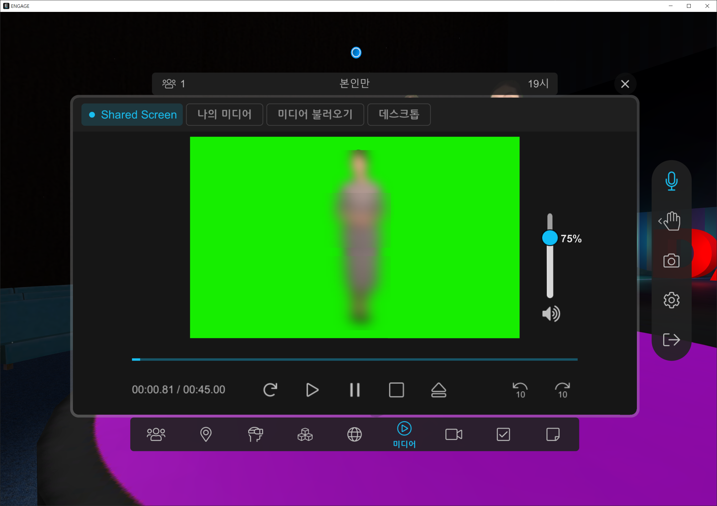 8)크로마키 영상(녹색 화면/홀로그램) 오브젝트는 영상의 녹색영역을 투명처리하여 표시합니다.