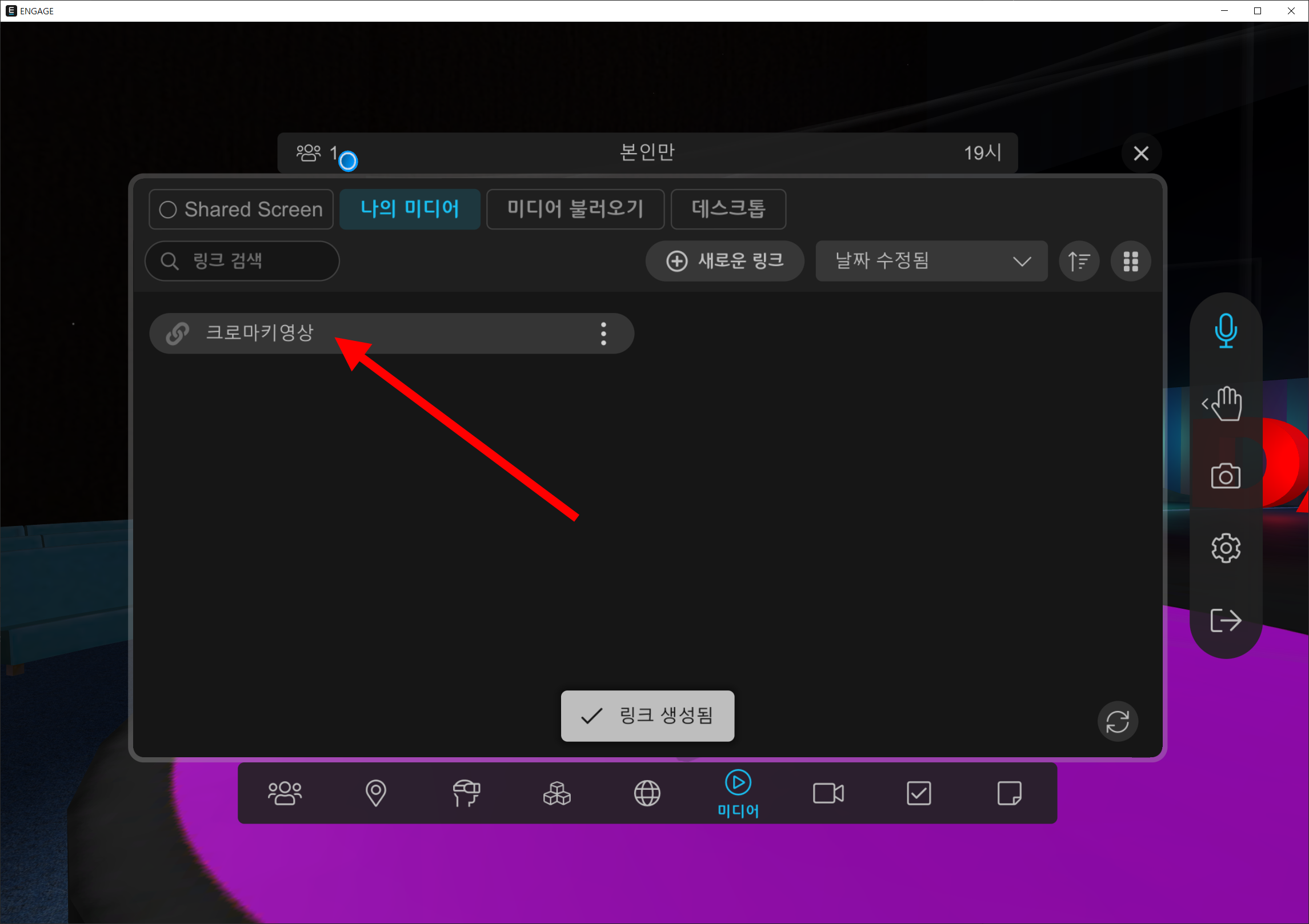 5)미디어 메뉴의 나의 미디어에서 크로마키영상의 URL을 입력하고 저장합니다.