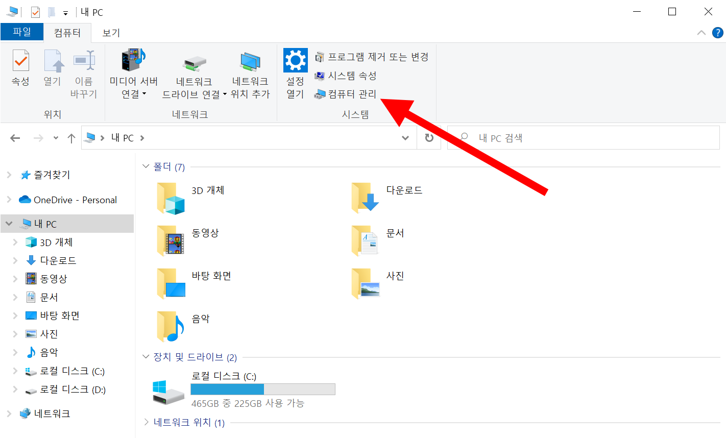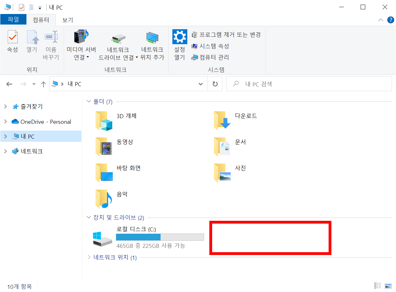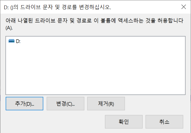 윈도우10에서 추가한 하드디스크 드라이브를 내 PC에서 표시하지않음