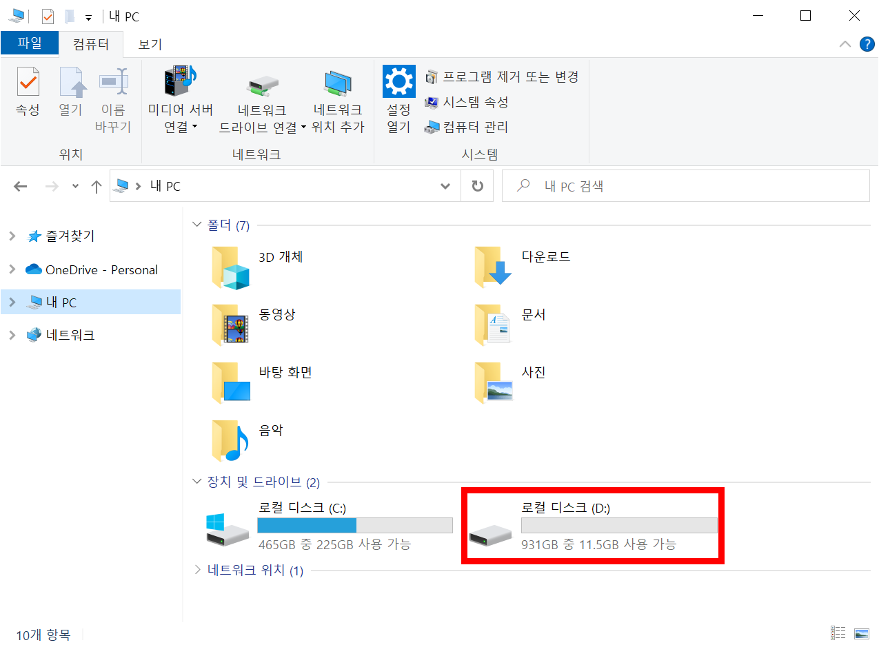 6)내 PC에서 해당 디스크 드라이브를 정상적으로 표시하는것을 확인할수있습니다.