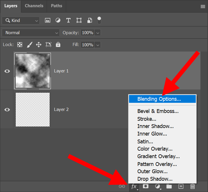 1)이미지의 레이어에서 blend options로 이동합니다.