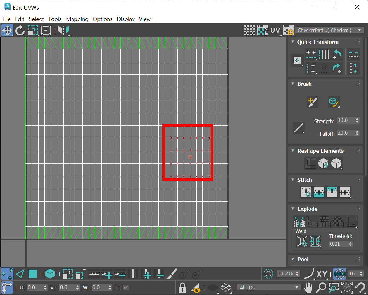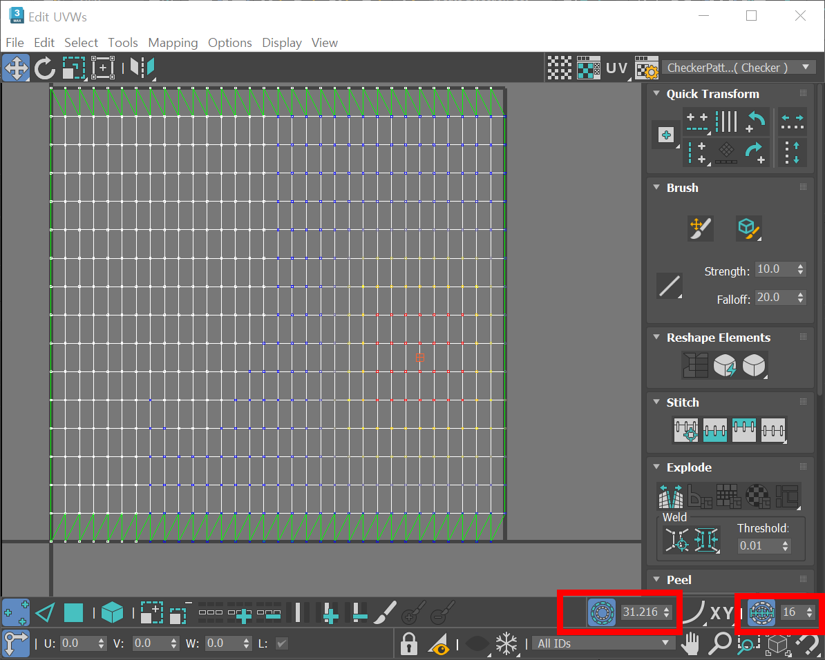 3D맥스 UV Editor에서 soft selection 사용하기