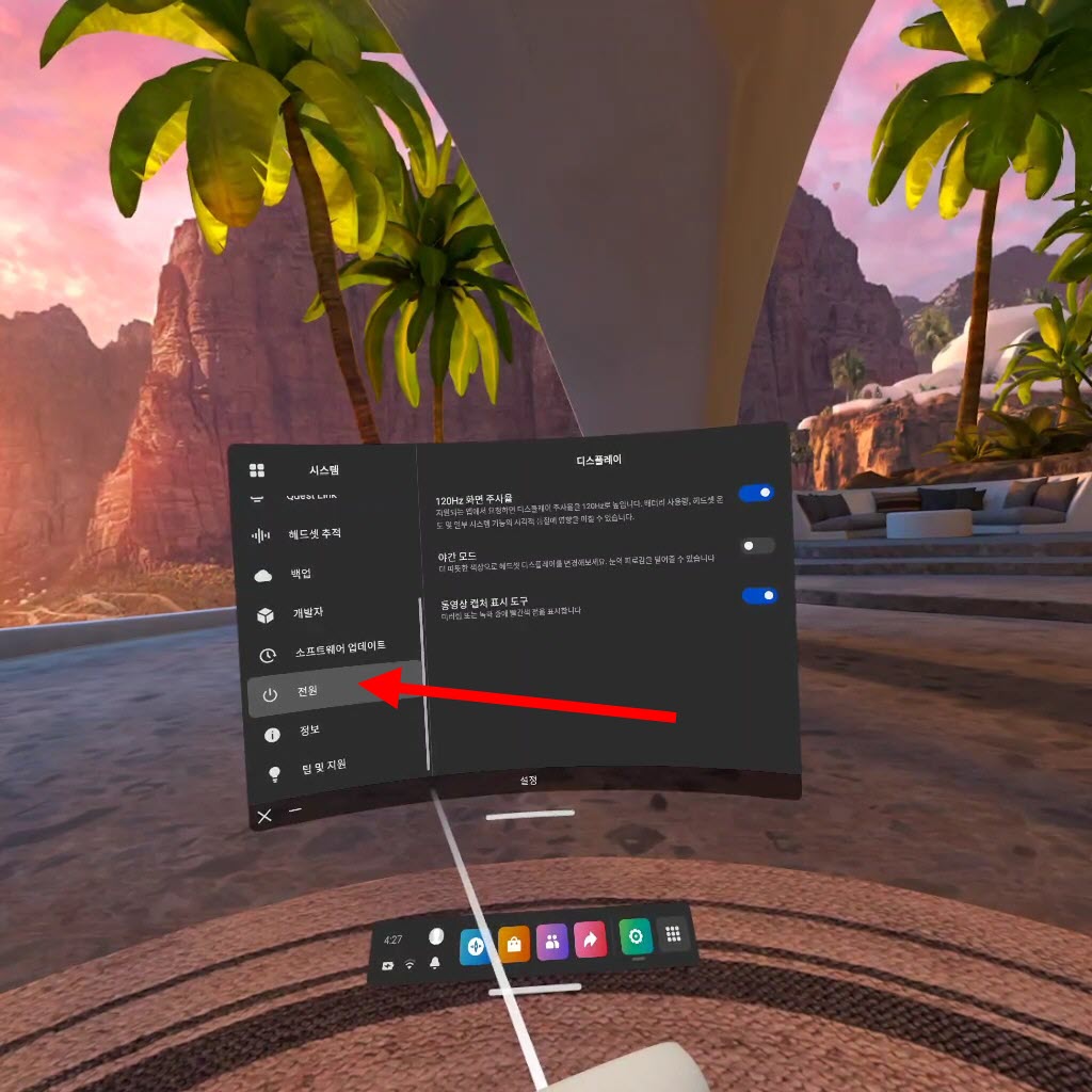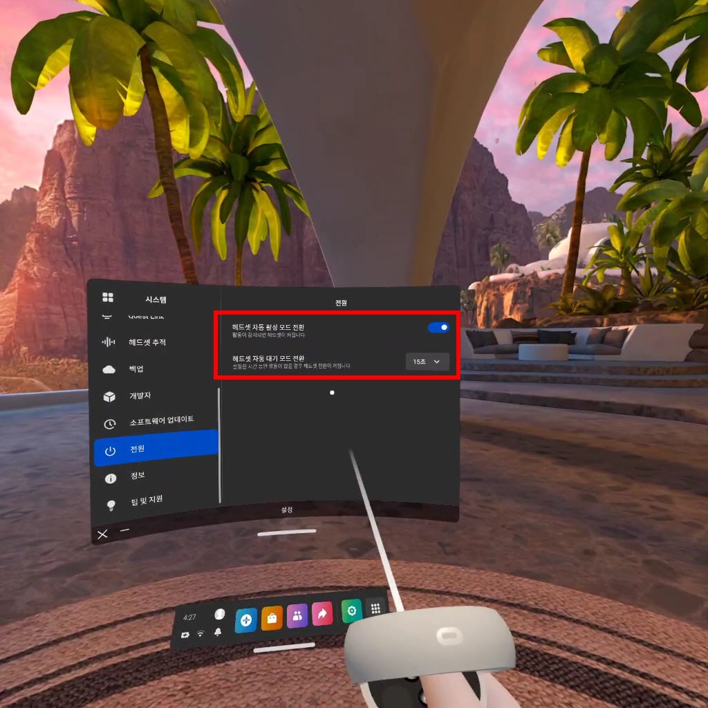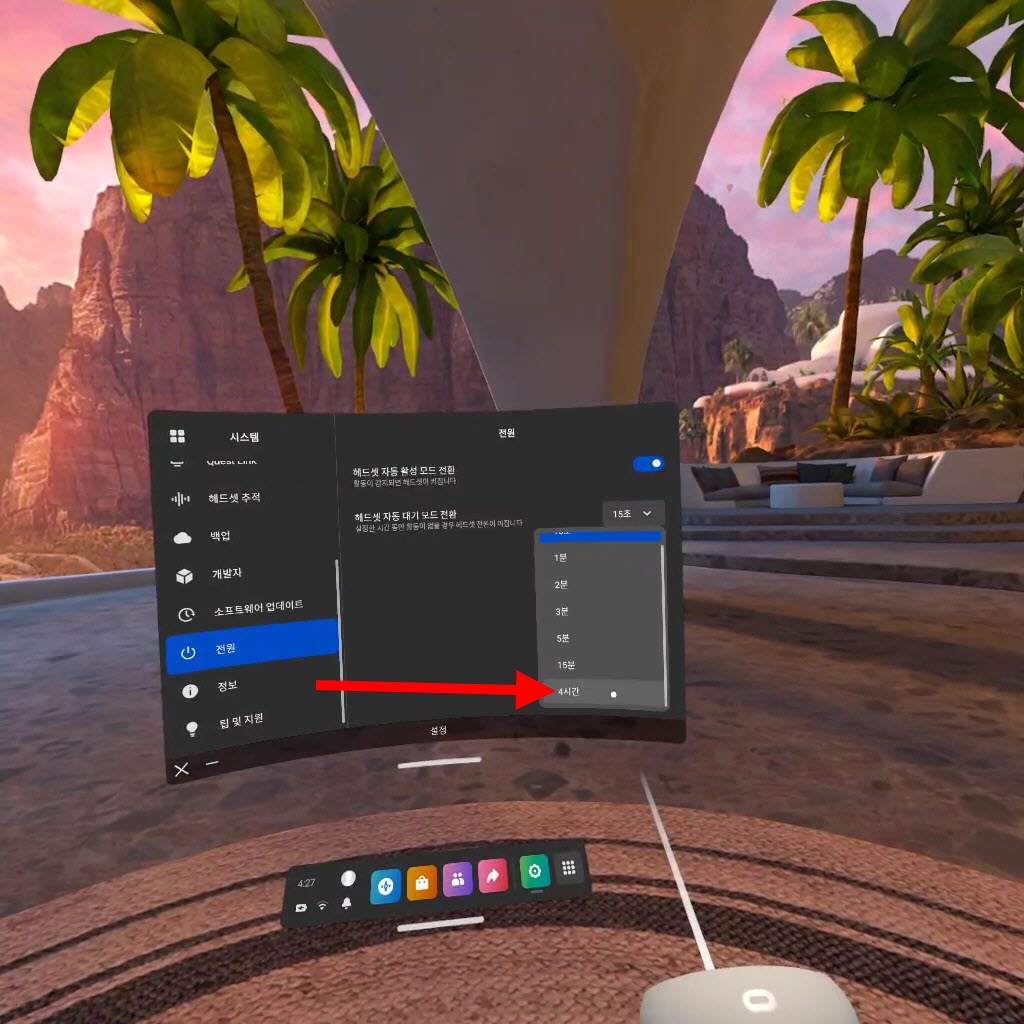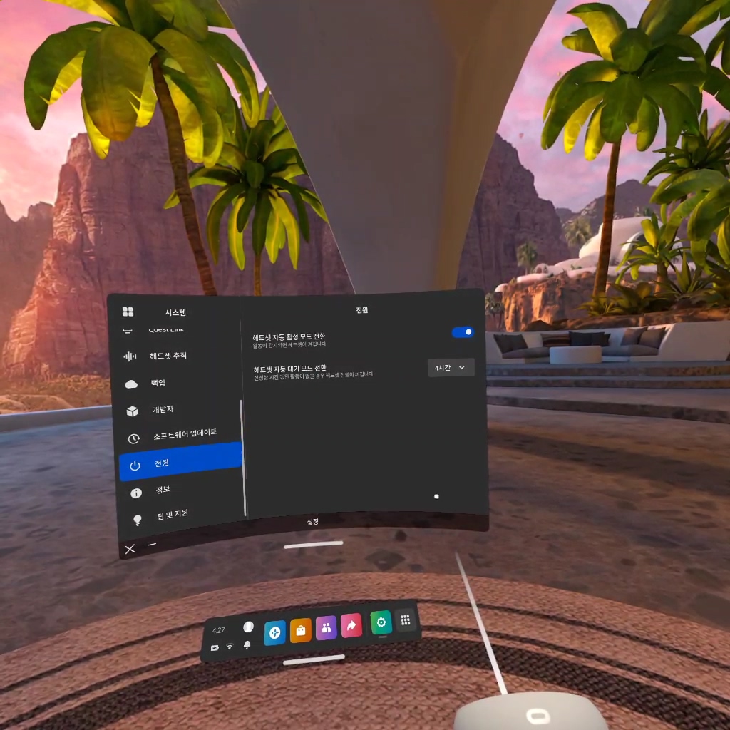 오큘러스 퀘스트2 헤드셋 자동 대기 모드 시간 설정하기