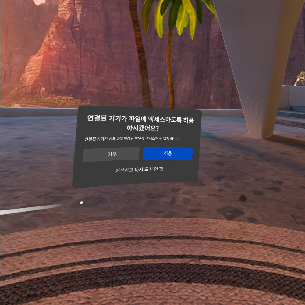 1)헤드셋과 PC를 USB C케이블로 연결하고 연결된 기기가 파일에 엑세스하도록 허용하시겠어요? 에서 허용을 선택합니다.