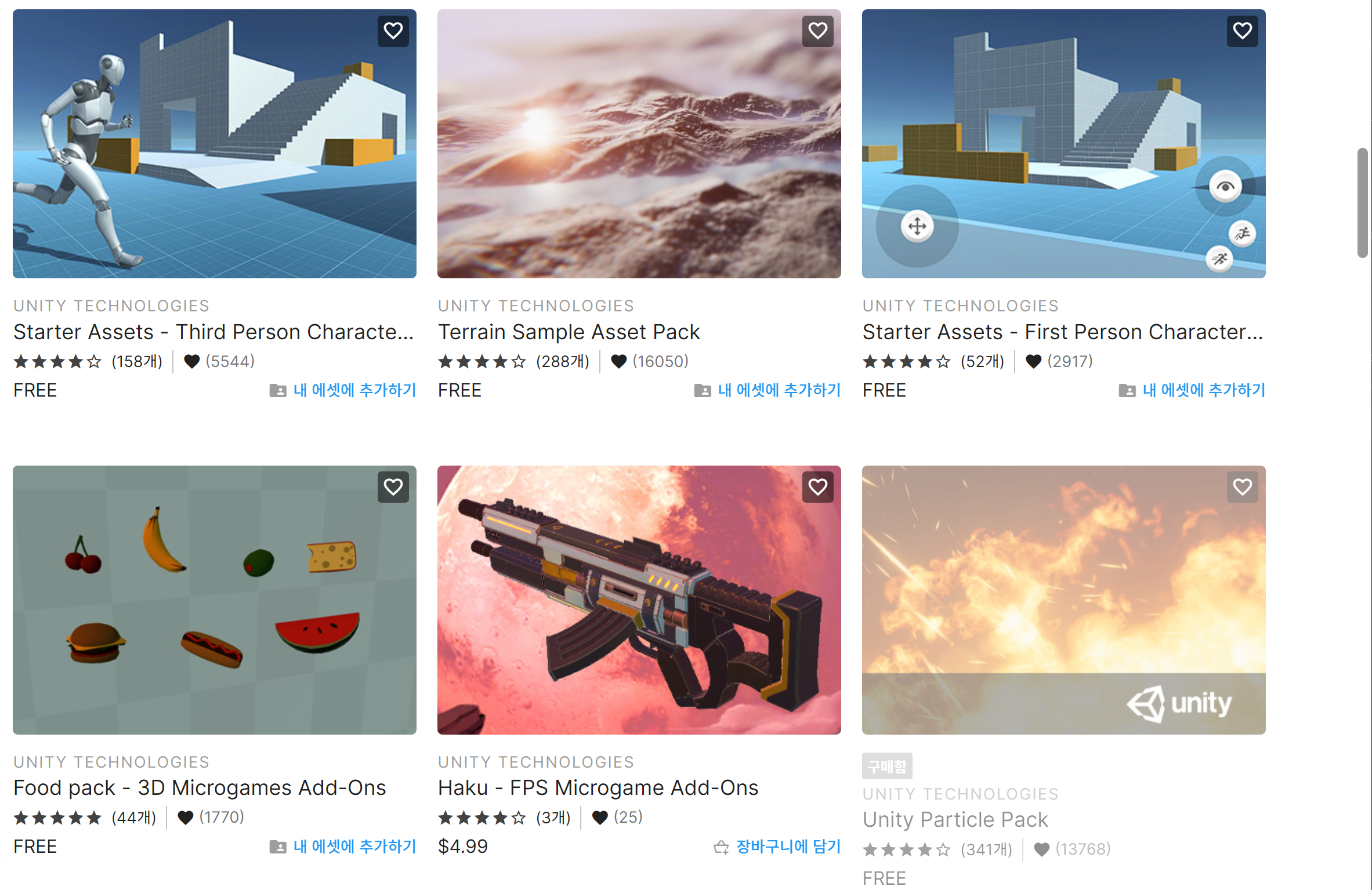 유니티에서 제공하는 공식 유니티 에셋(프로젝트, 튜토리얼, 모델, 프랍, 기타)