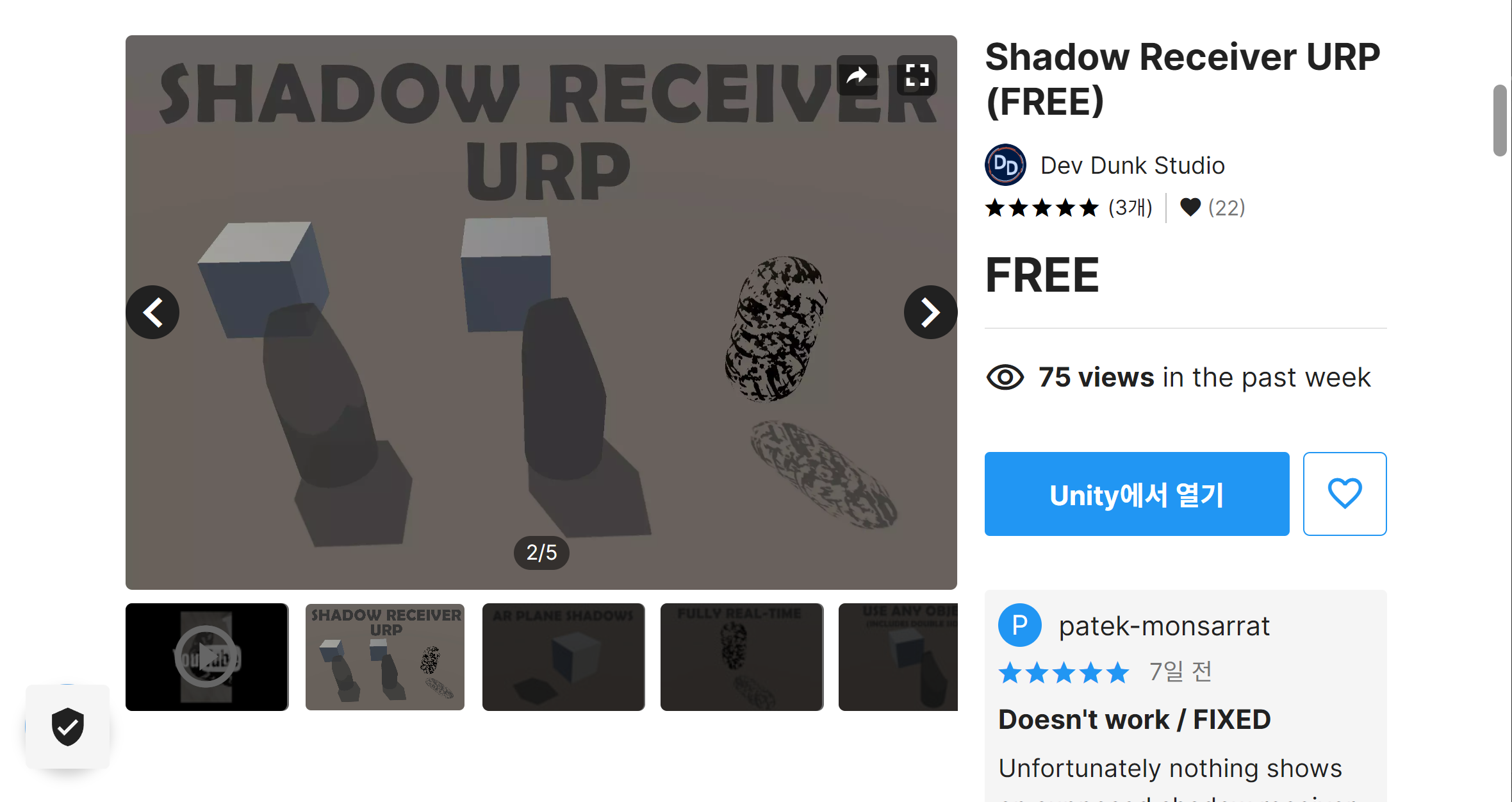 증강현실(AR) 콘텐츠에서 평면에 그림자를 렌더링하는데 주로 활용할수있는 무료 에셋입니다(URP)