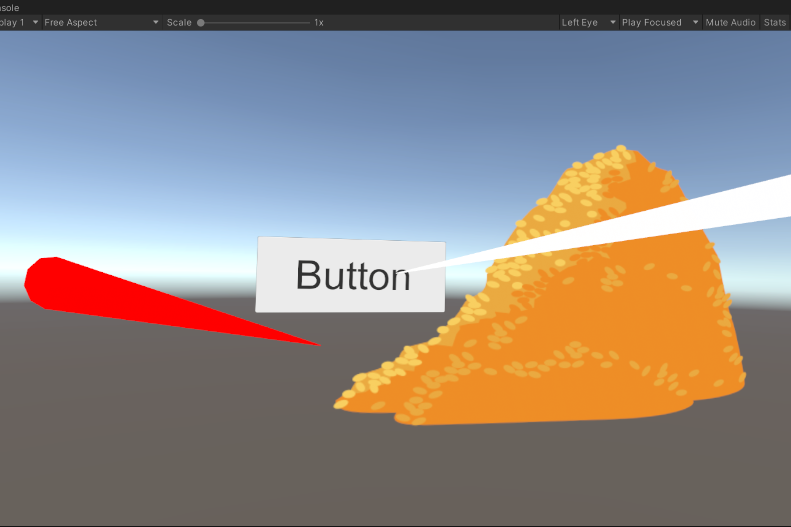 8)게임을 플레이하면 컨트롤러가 캔버스내의 UI 게임오브젝트와 상호작용할수있습니다. 상호작용할때 컨트롤러의 라인 비주얼이 기본설정 색상인 흰색으로 표시됩니다.