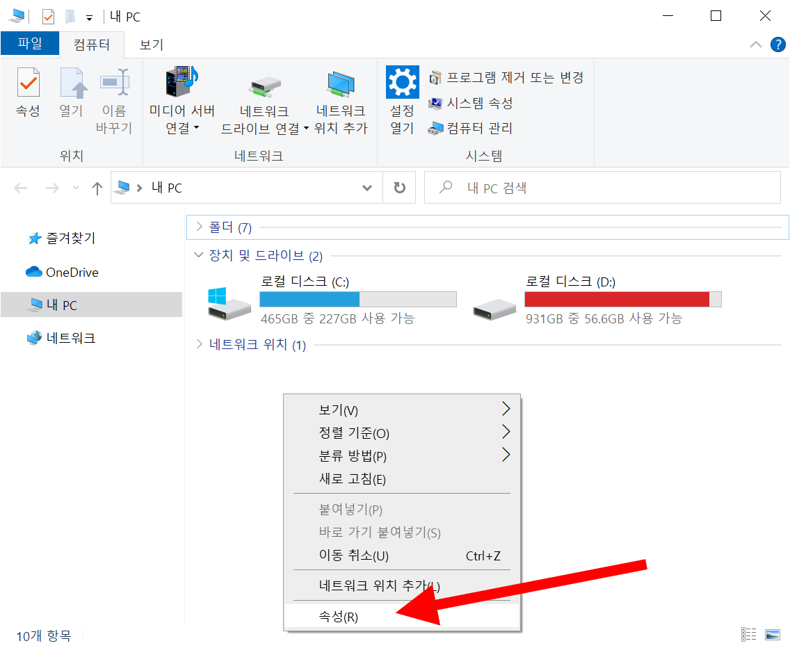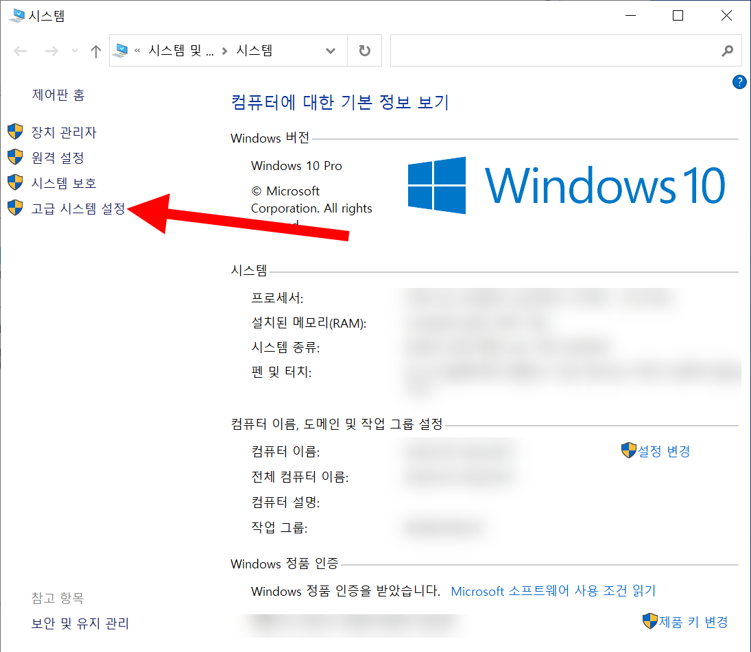 6)시스템의 고급 시스템 설정으로 이동합니다.