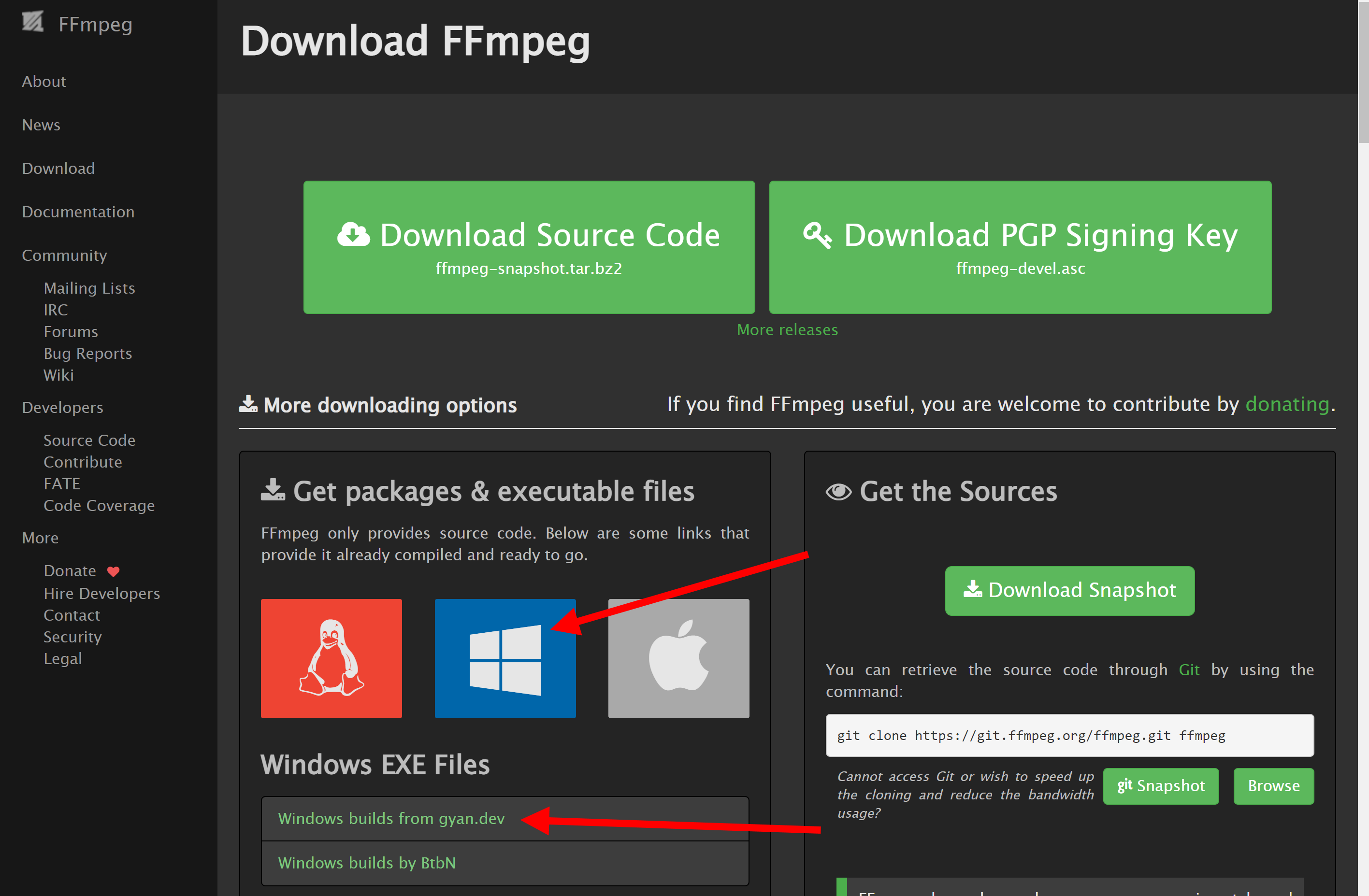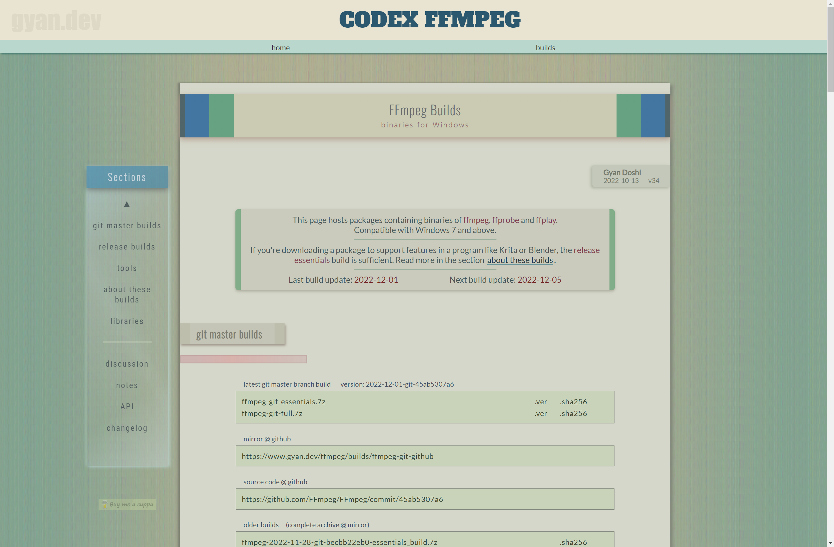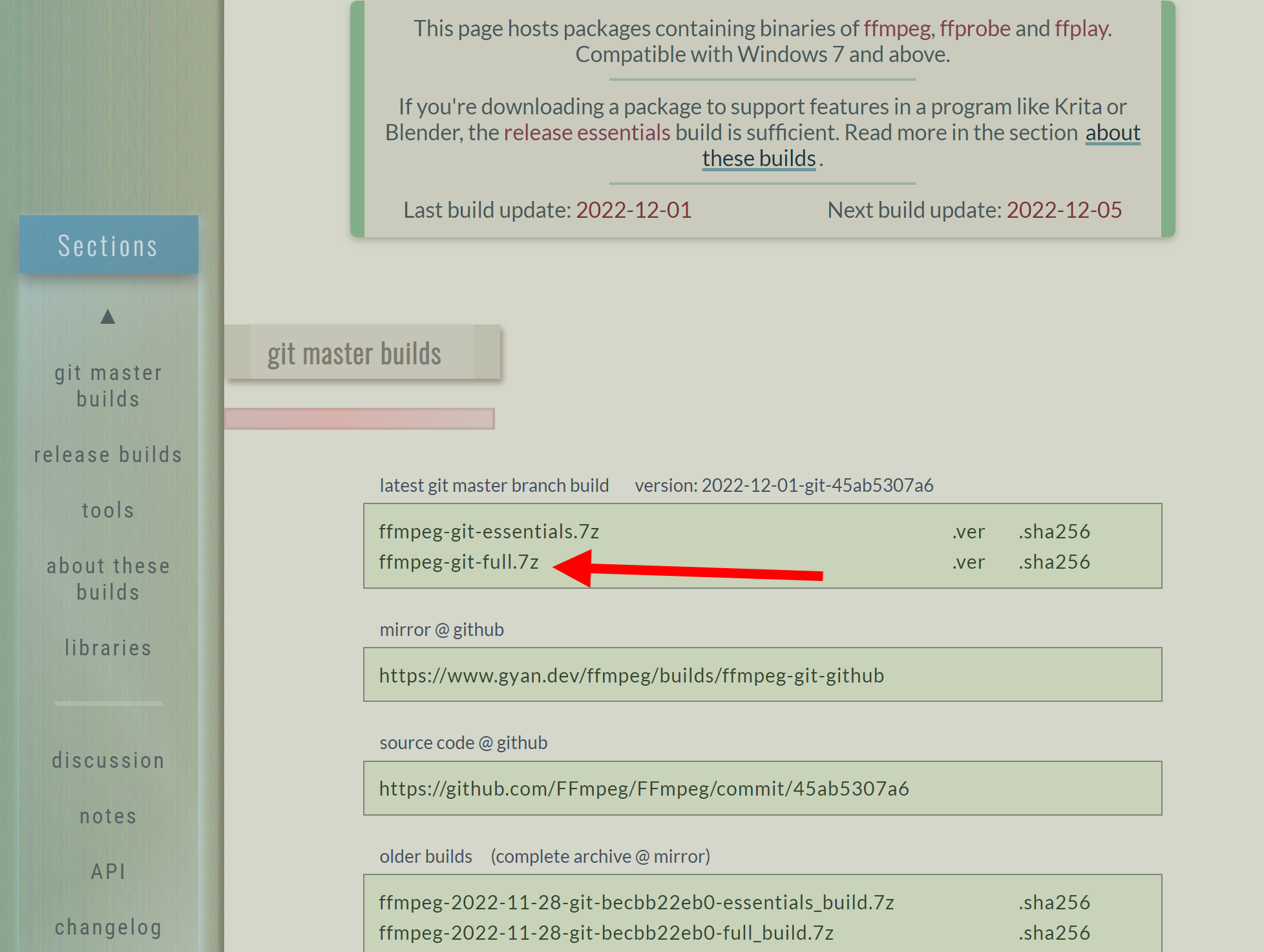 2)git master builds에서 ffmpeg-git-full.7z를 다운로드합니다.