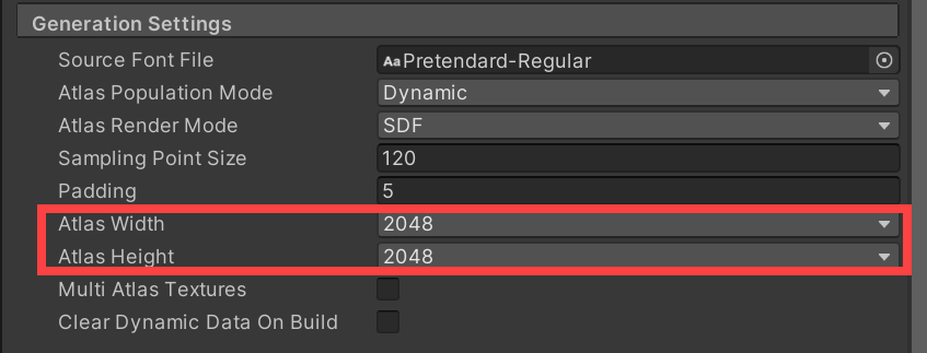 아틀라스 해상도(Atlas Width, Height)를 설정합니다.