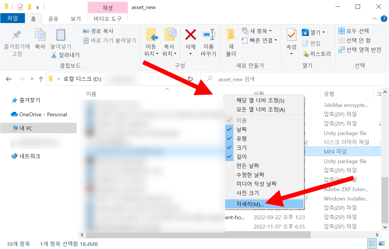 2)폴더에서 아래 표시한곳을 마우스 우클릭하고 자세히로 이동합니다.