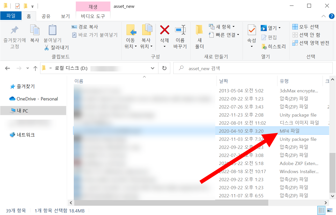 1)폴더에서 동영상 유형의 파일을 확인합니다.