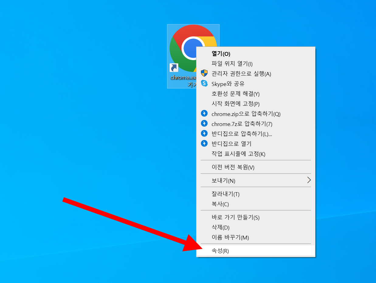 2)바로가기를 선택하고 마우스 우클릭하고 속성으로 이동합니다.