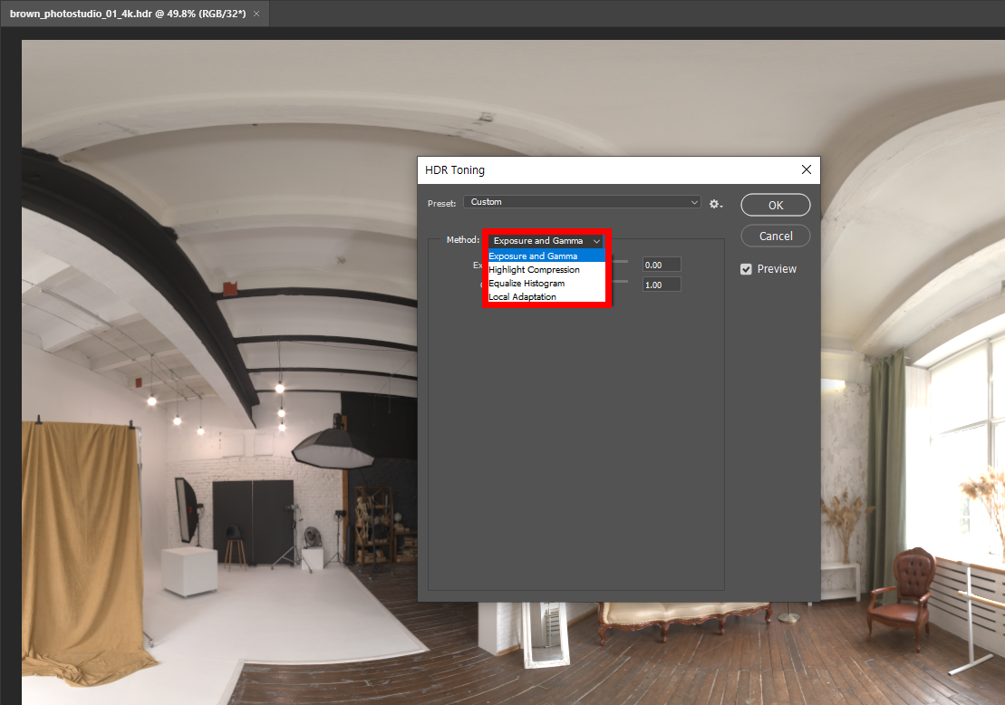 1)포토샵에서 hdr파일을 열기합니다.