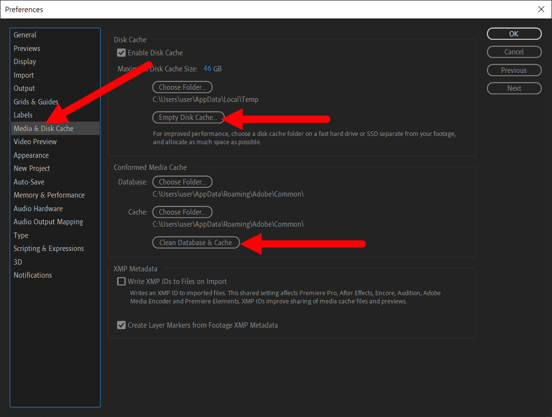 6)media & disk cache에서 empty disk cache, clean database & cache를 클릭하고 확인합니다.