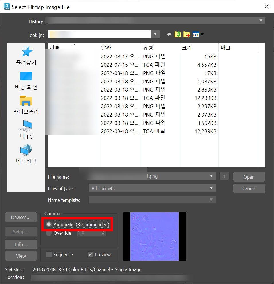 5)bitmap 옵션에서 gamma의 automatic에 체크되어있는것을 확인할수있습니다.