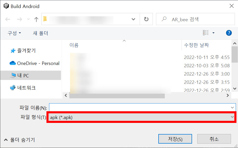 1)유니티 안드로이드 플랫폼에서 기본 옵션으로 빌드하면 apk파일을 생성합니다.