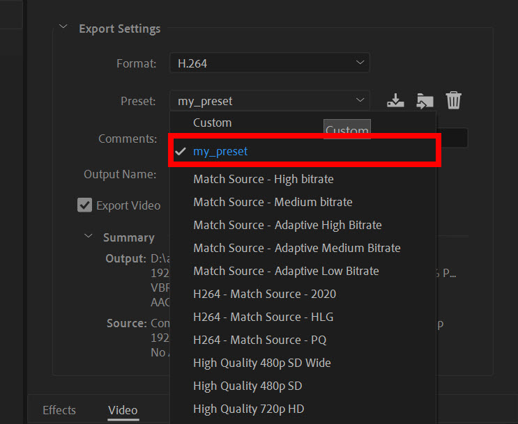미디어인코더(media encoder)에서 인코딩 프리셋 저장하기(save preset)