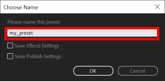 4)save preset을 클릭하면 사용자 지정한 프리셋을 저장합니다.