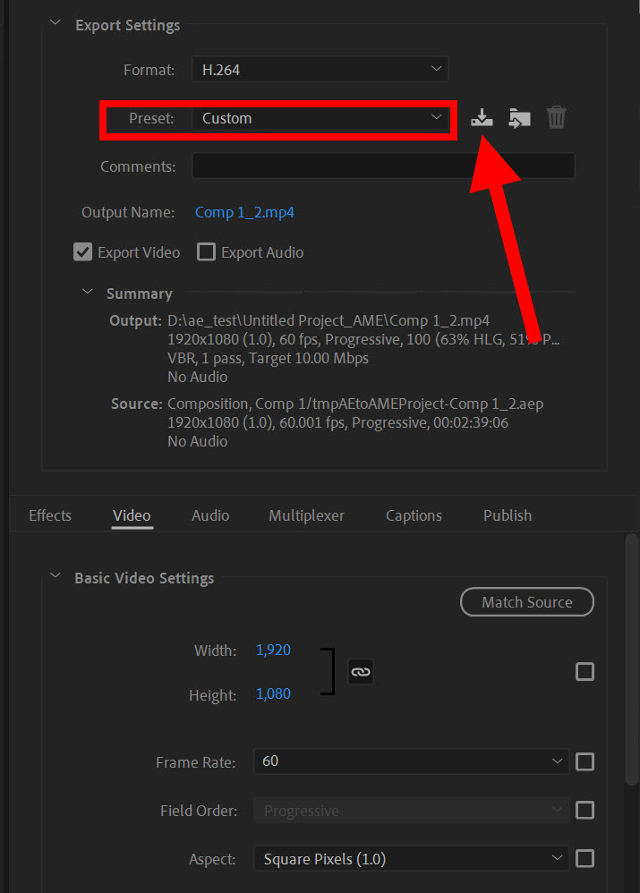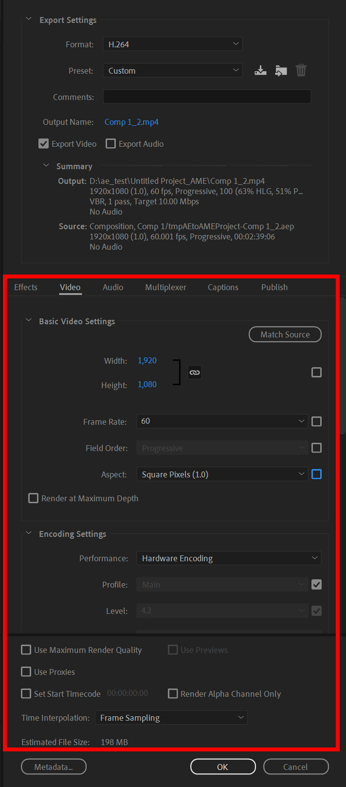 3)비디오, 오디오, 기타 내보내기 설정을 사용자 지정합니다.