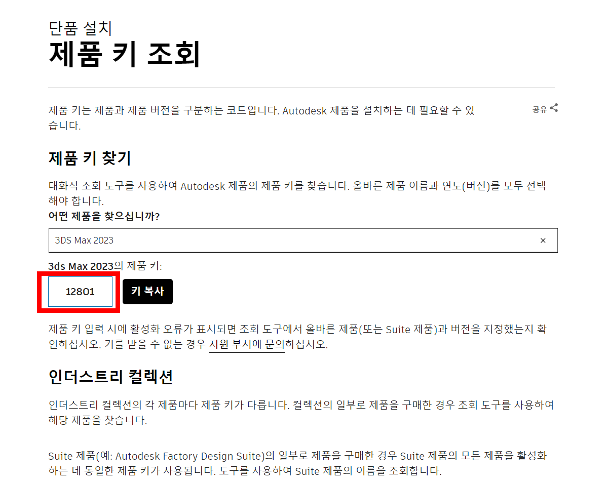 아래 웹사이트에서 3d맥스, 마야, 캐드 기타 오토데스크의 제품 키를 조회할수있습니다. 제품 이름과 버전을 입력하면 해당 제품의 키를 표시합니다.