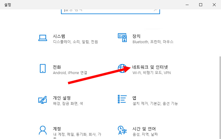 2)네트워크 및 인터넷으로 이동합니다.