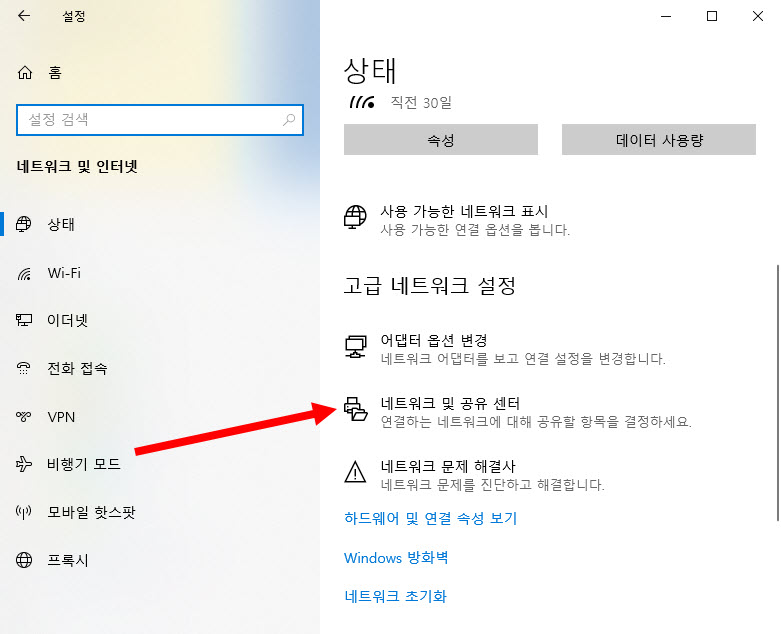 3)네트워크 및 공유 센터로 이동합니다.