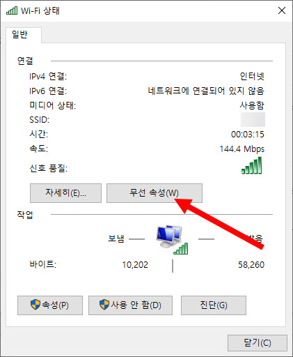 5)Wi-Fi 상태에서 무선 속성으로 이동합니다.