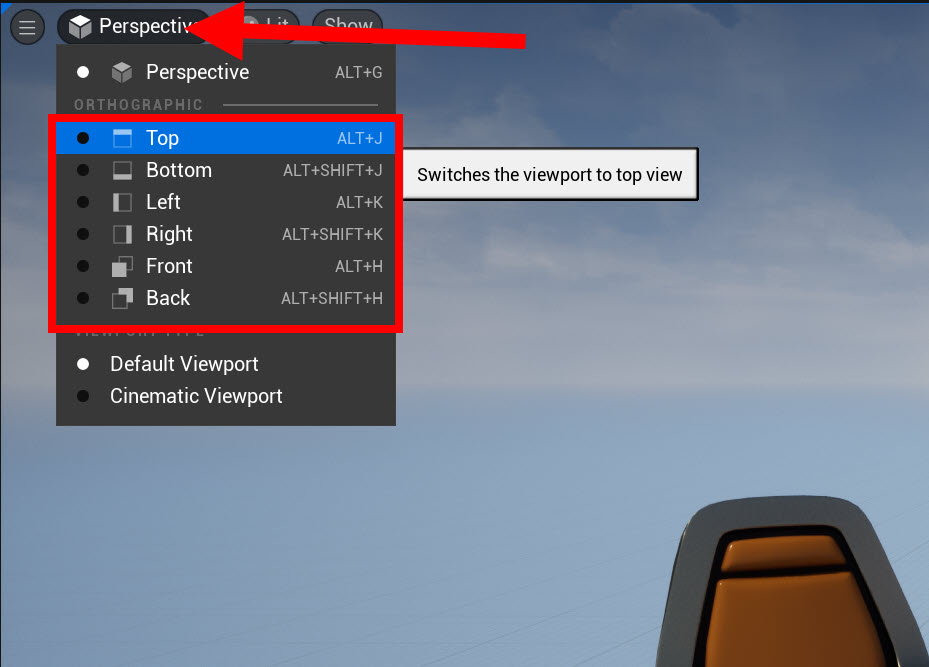 2)뷰포트 좌측 상단에서 orthopraphic 뷰로 변경합니다(top, bottom, left, right, front, back)