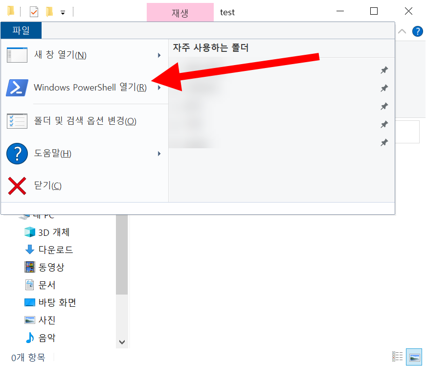 윈도우10 현재 폴더 경로에서 파워쉘(power sell) 열기
