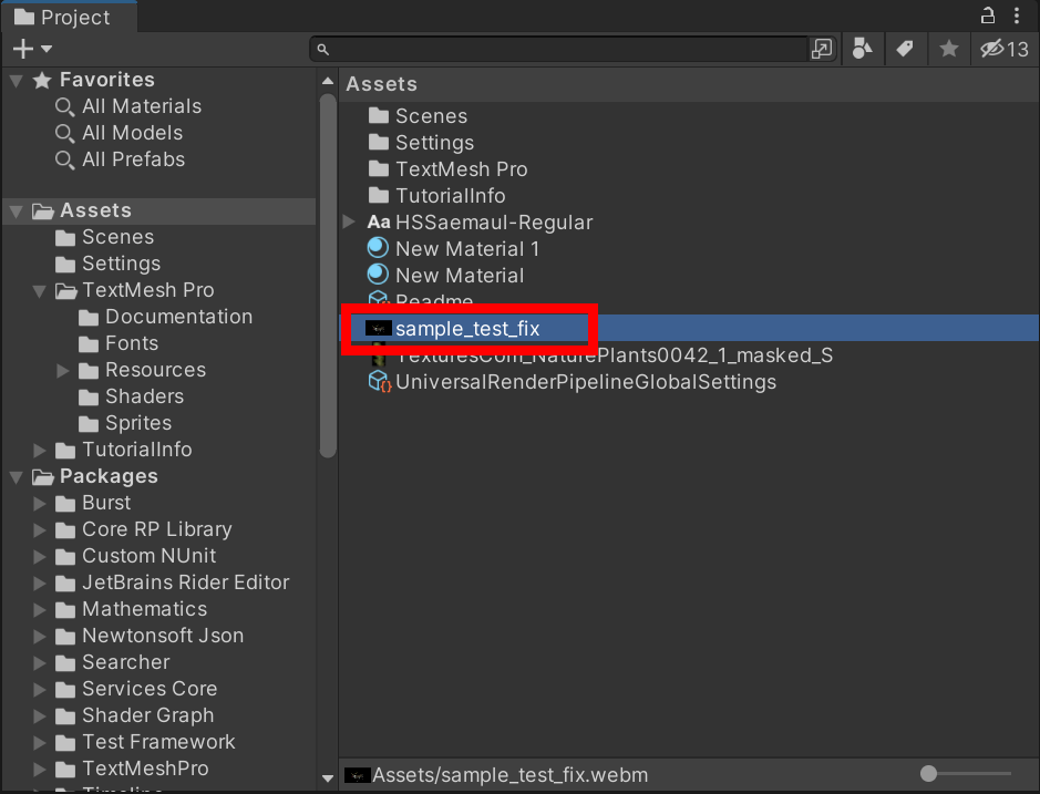 1)프로젝트에 webm 형식의 동영상 파일을 가져오기합니다.