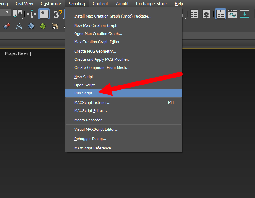 3)상단 scripting 메뉴의 run script에서 다운로드한 스크립트를 실행합니다.