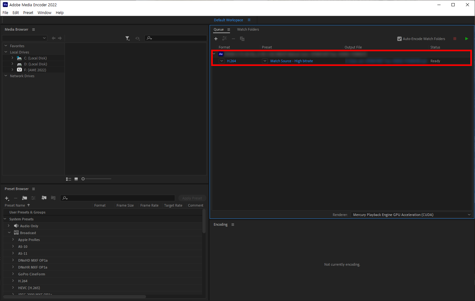 3)미디어인코더를 실행하며 정상적으로 대기열에 추가한것을 확인할수있습니다.