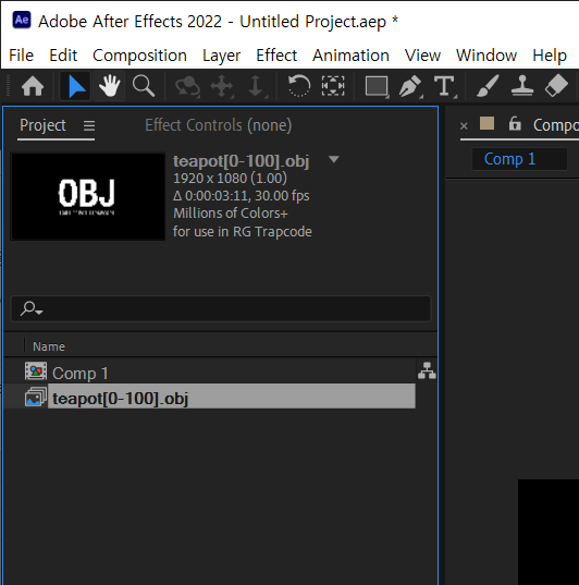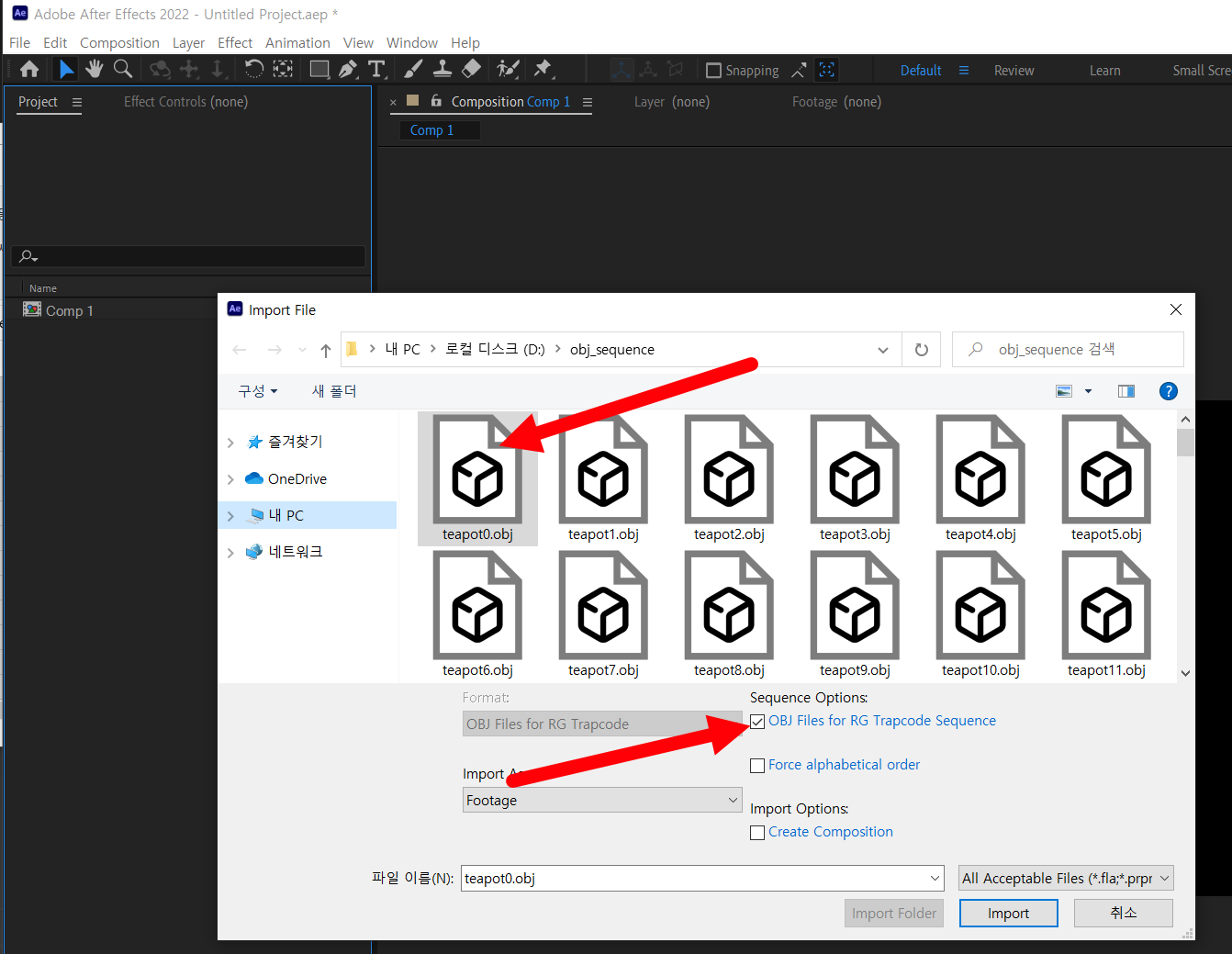 에프터이펙트(after effect)에서 OBJ sequence 가져오기(RG Trapcode)