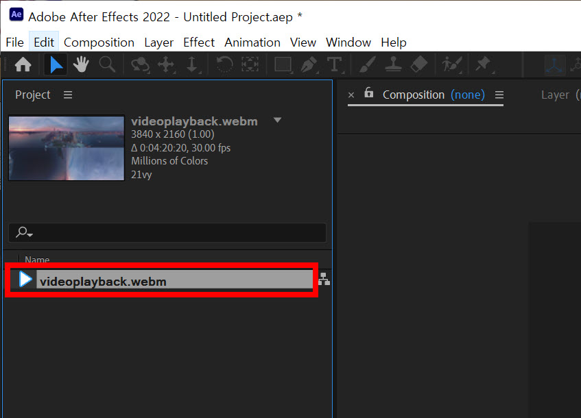 3)에프터이펙트에서 webm 파일을 가져오기하고 편집할수있습니다.