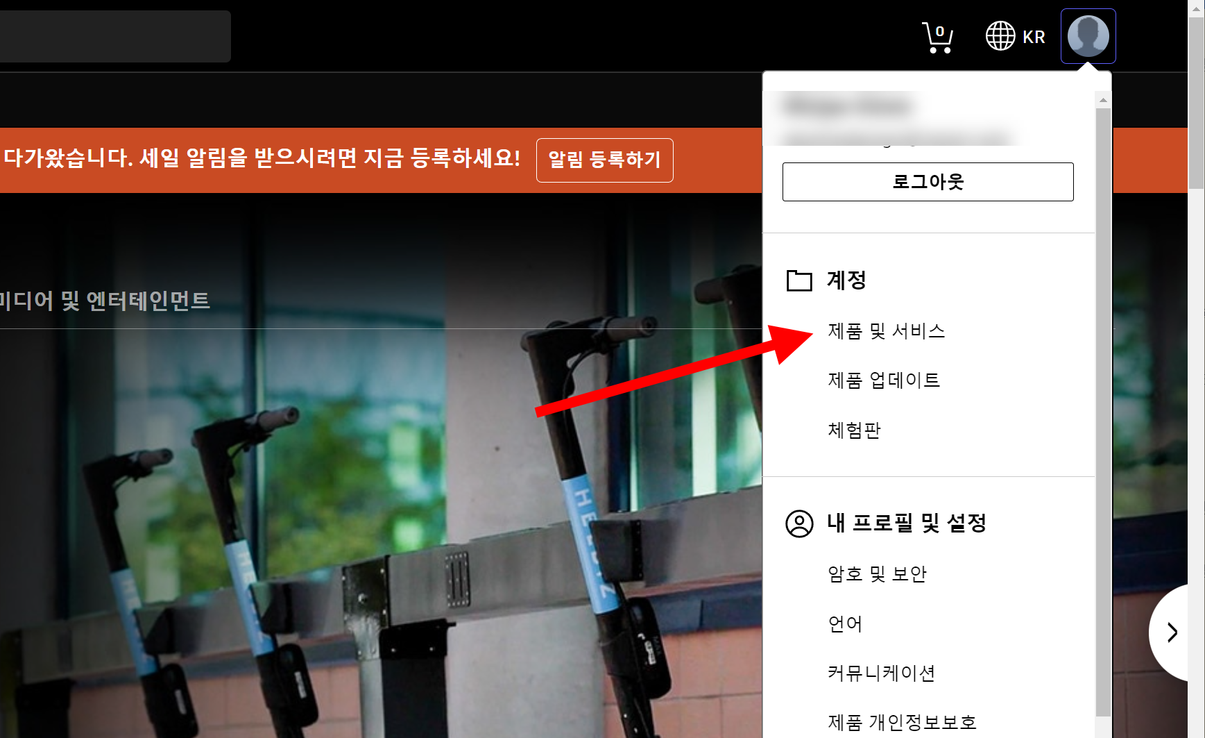 3)계정의 제품 및 서비스로 이동합니다.
