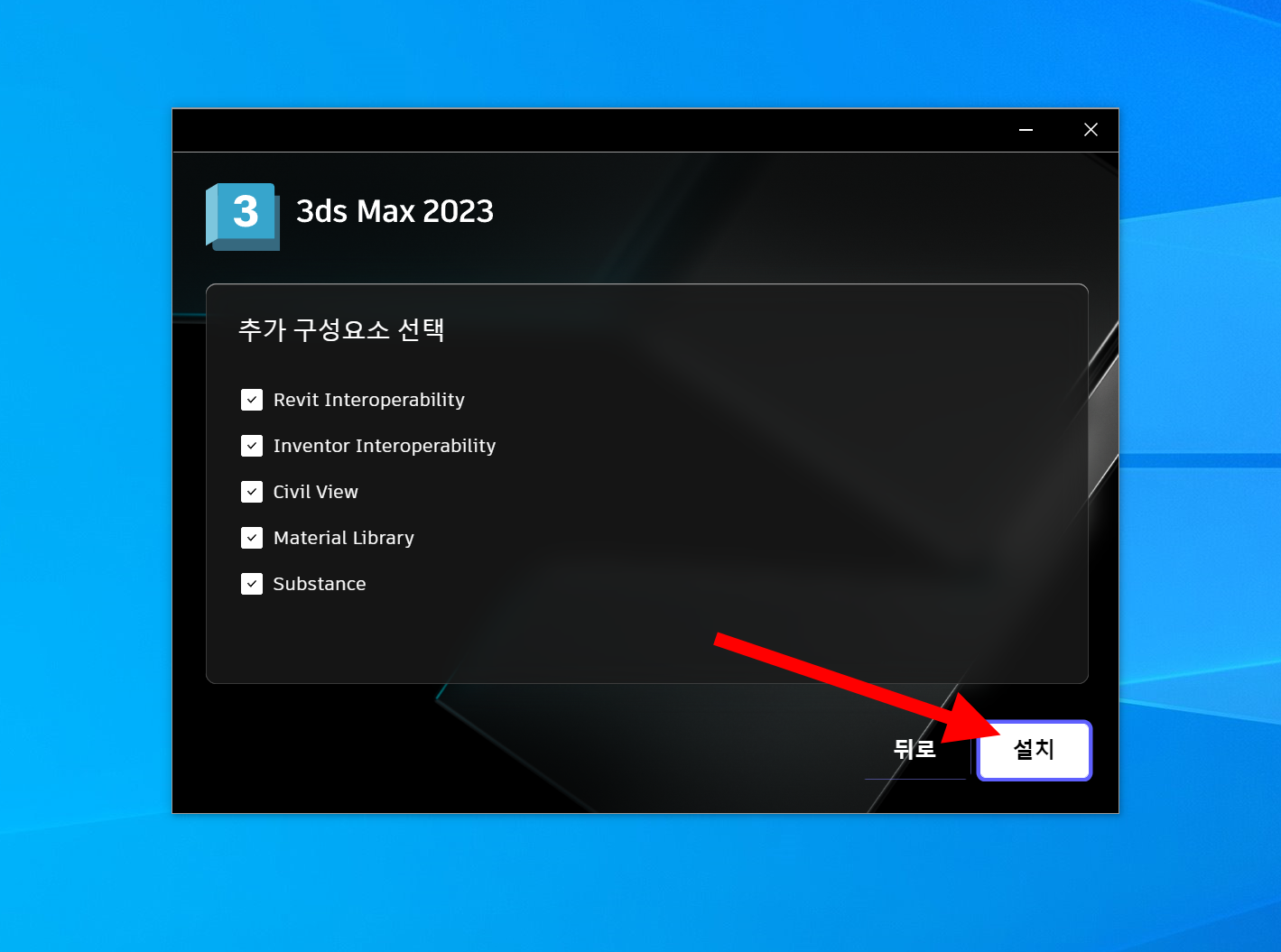 8)추가 구성요소를 선택하고 설치를 진행합니다.