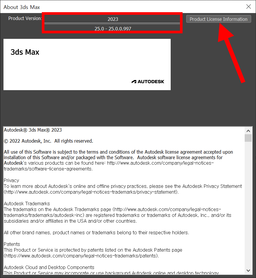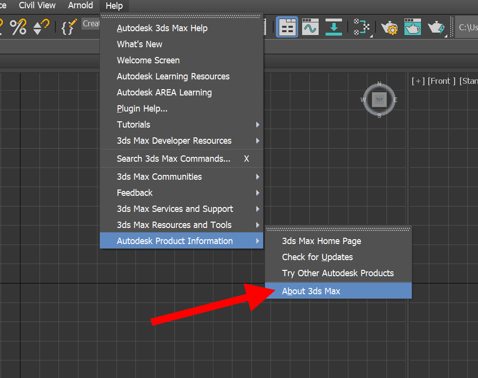 12)상단의 help 메뉴에서 autodesk product information의 about 3ds max로 이동합니다.