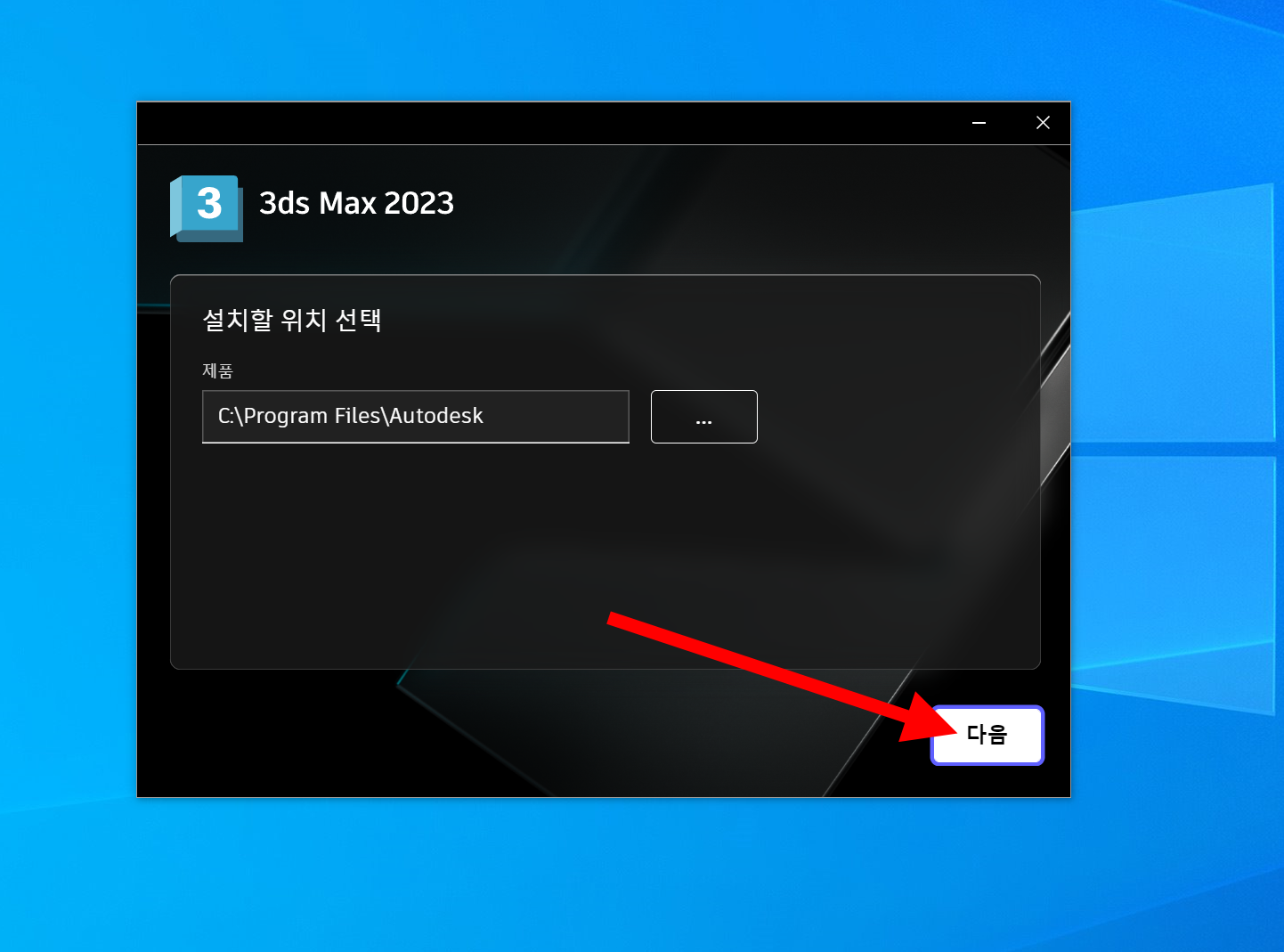 7)설치 위치를 선택하고 다음으로 이동합니다.