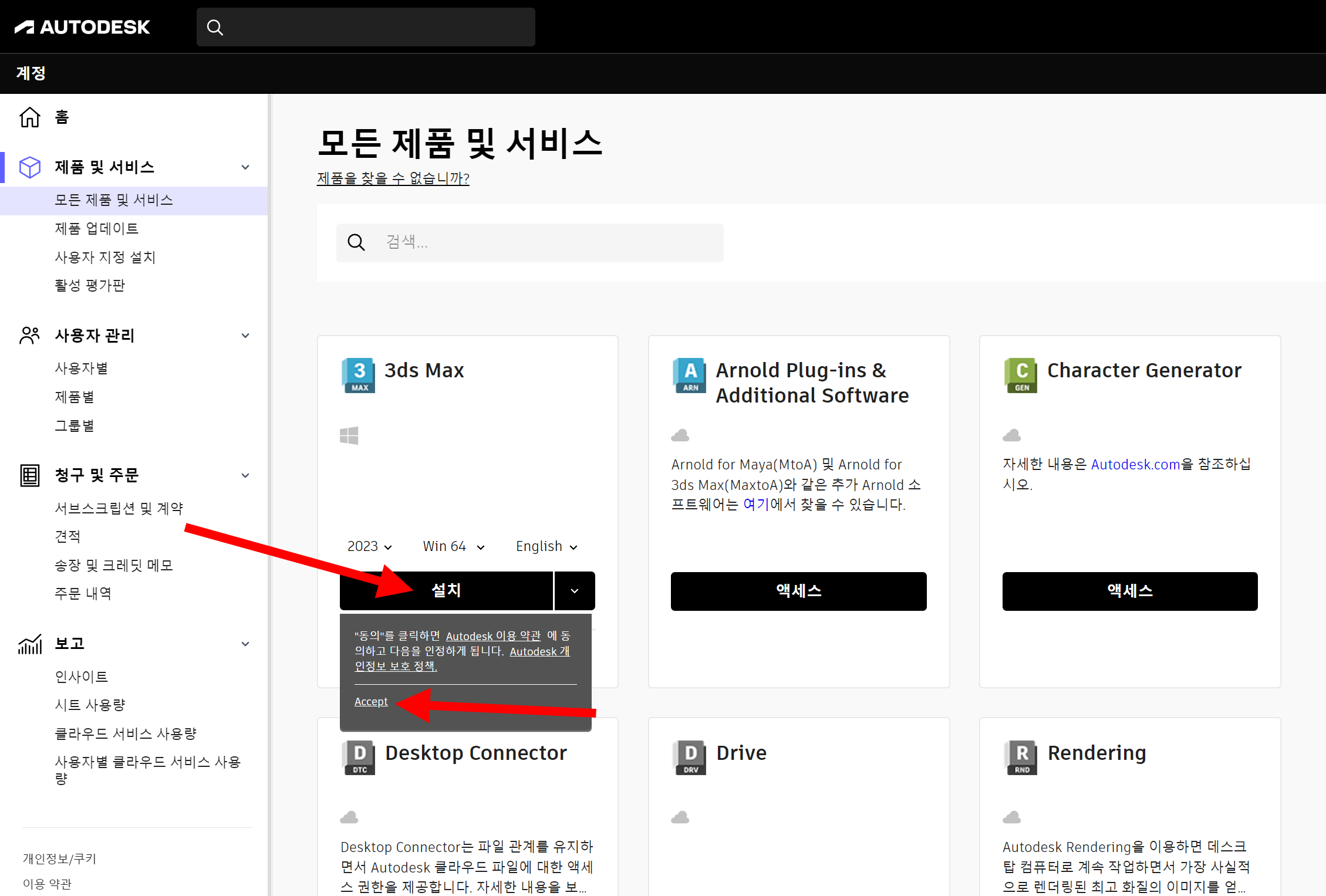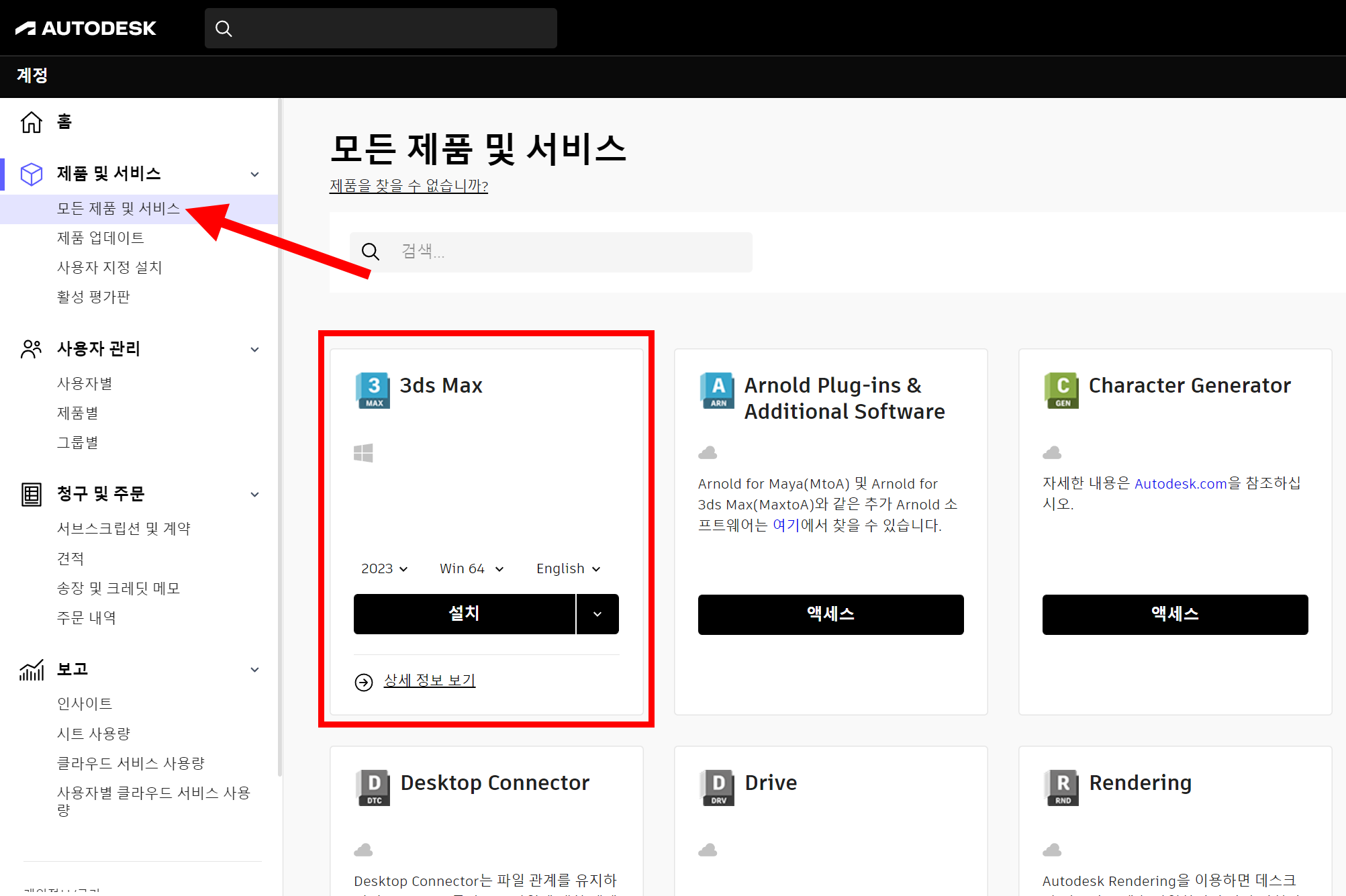 4)모든 제품 및 서비스에서 3ds Max를 확인합니다.