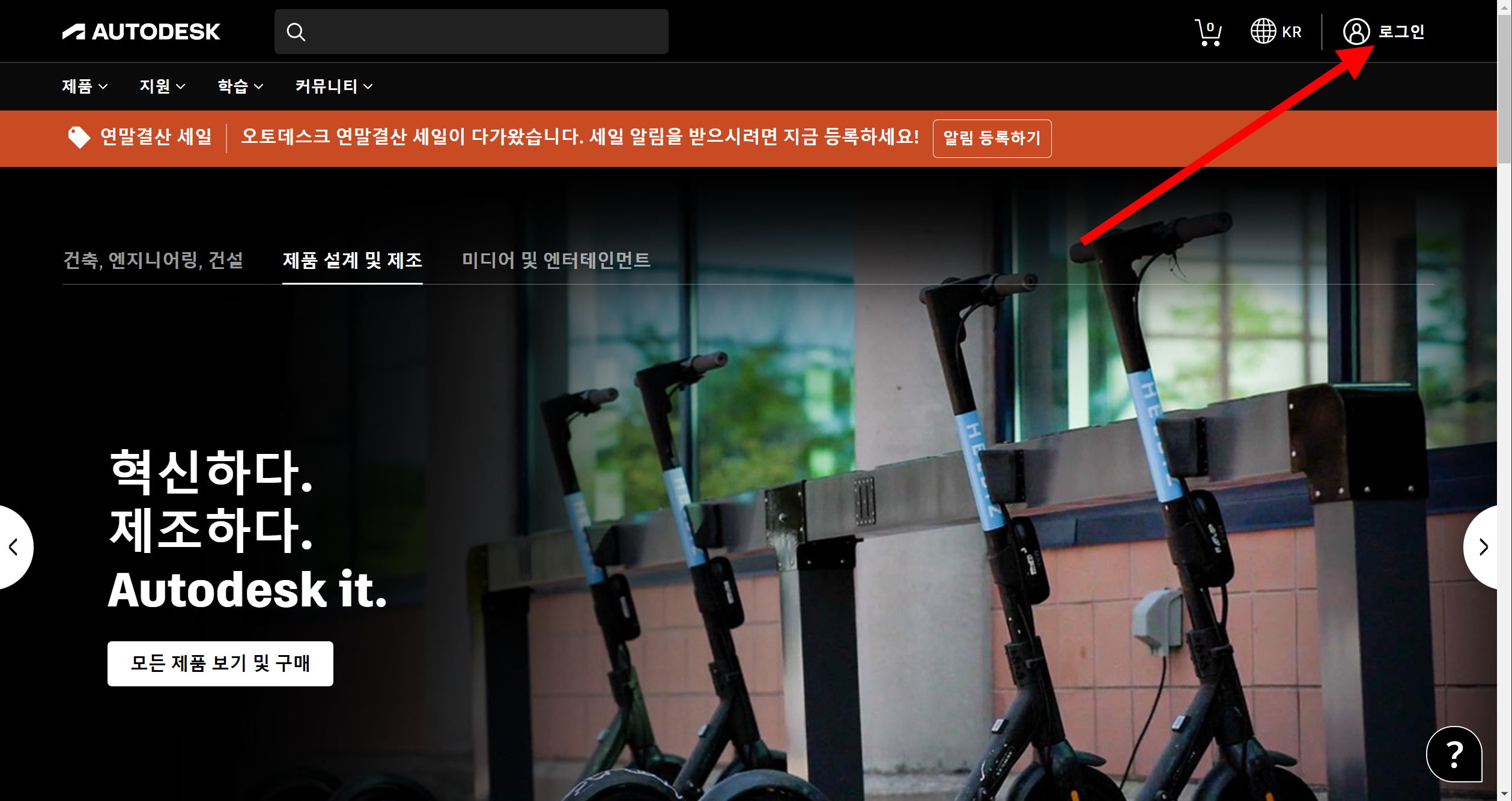 1)오토데스크 홈페이지로 이동합니다.