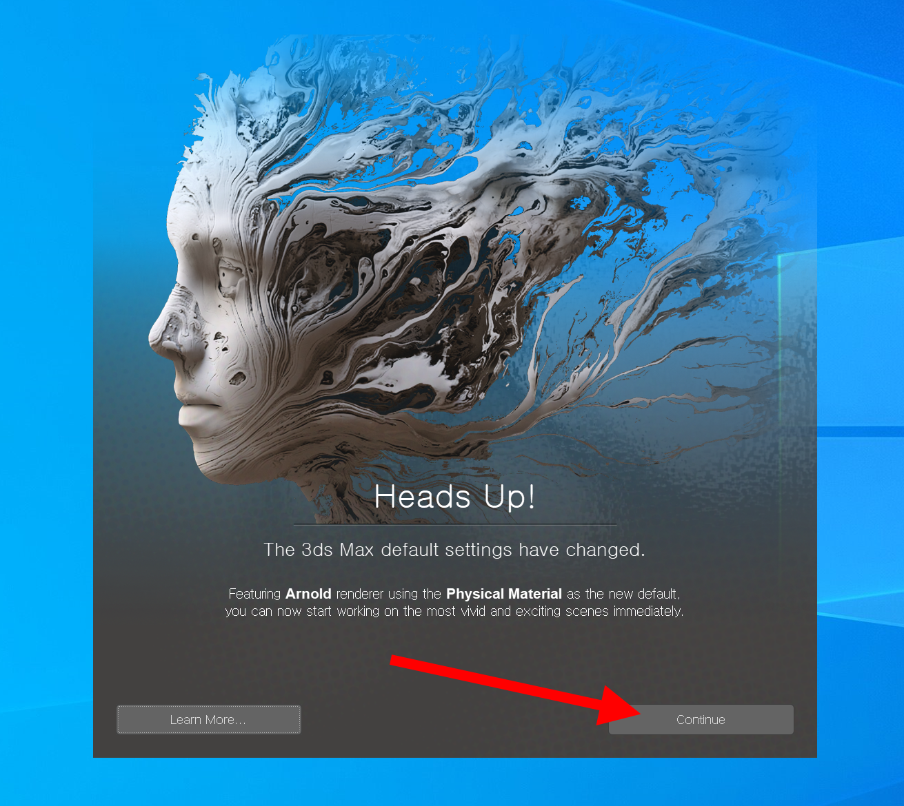 11)continue를 클릭하면 3d 맥스 프로그램을 실행합니다.