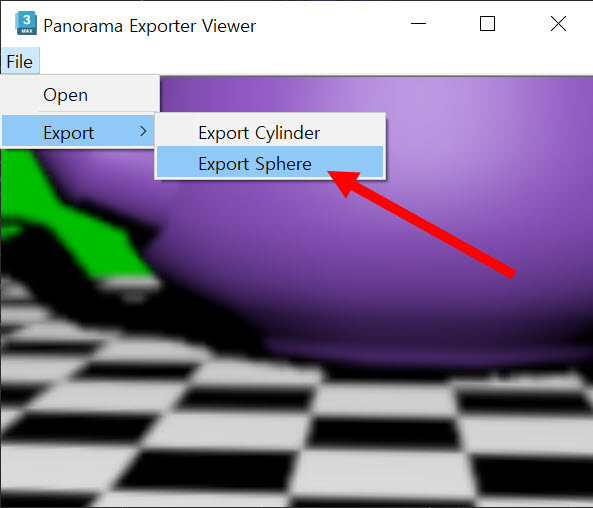 7)viewer의 file에서 export의 export sphere를 선택합니다.