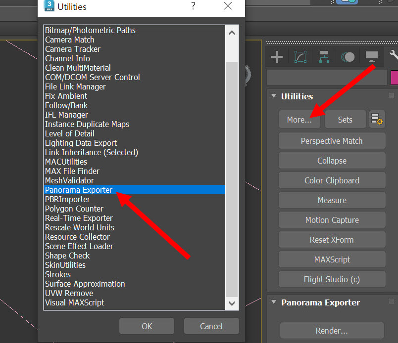 3)유틸리티의 more에서 panorama exporter를 선택합니다.