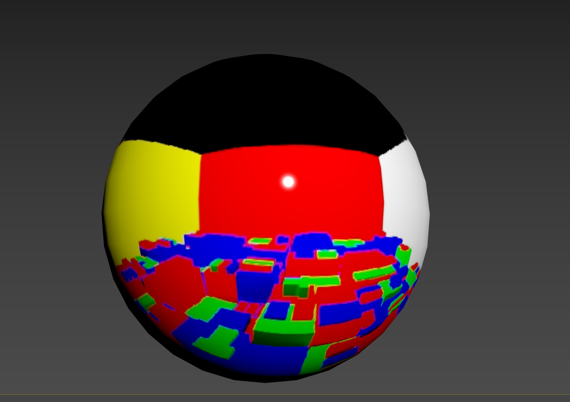 8)구형 오브젝트에 360 파노라마 이미지(sperical)를 맵핑해서 확인합니다.