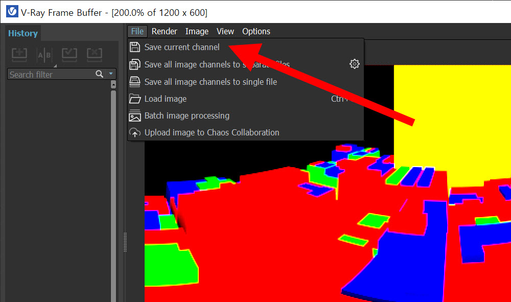 7)v-ray frame buffer의 file 메뉴에서 결과물을 저장합니다.