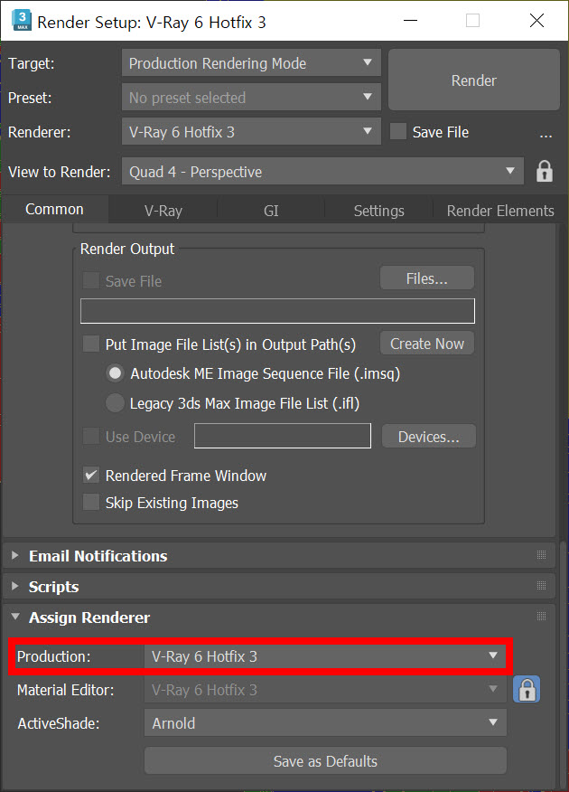 3)렌더 설정에서 브이레이 렌더러를 선택합니다.