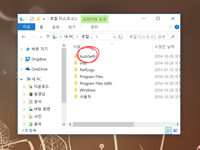 7)오토셋 설치를 완료하면 프로그램을 이용할수있고 설치경로에서 autoset폴더를 확인할수있다.