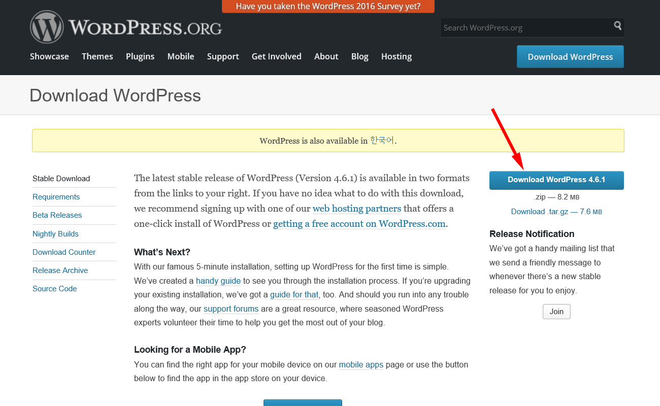 1)아래 웹사이트에서 워드프레스를 다운로드합니다.